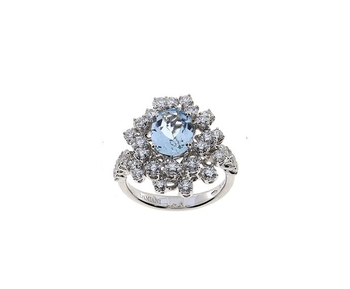 Anello in oro bianco con diamanti e acquamarina